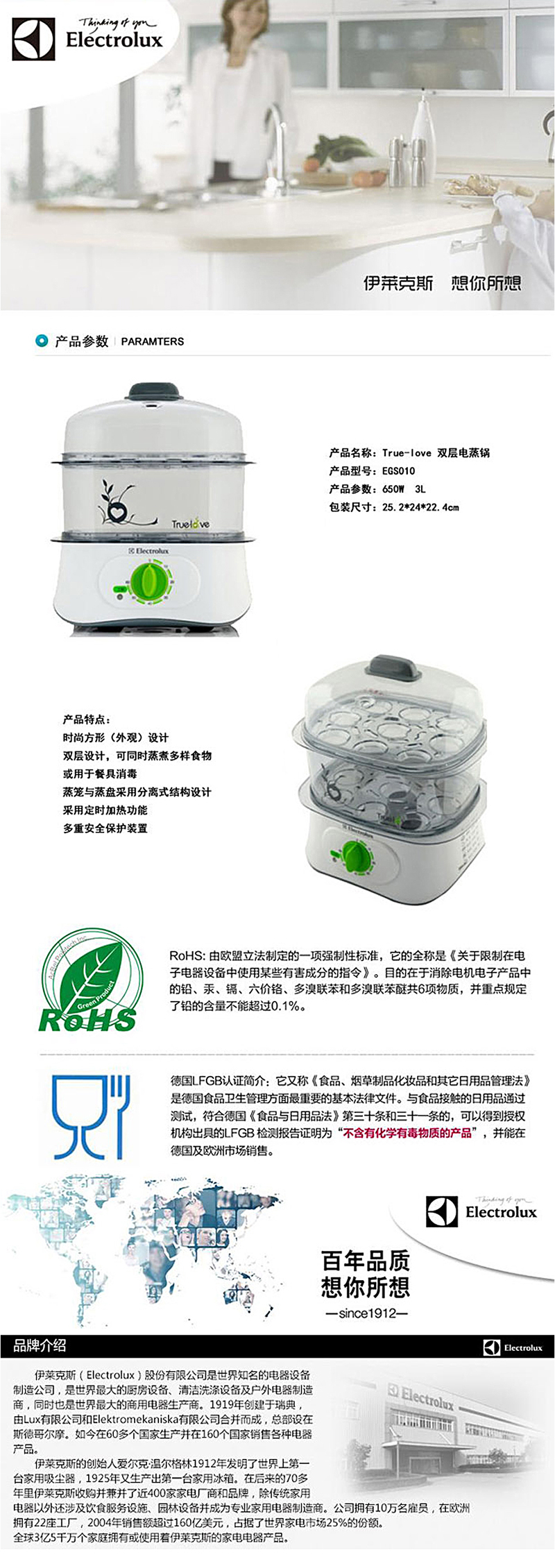 伊莱克斯 双层电蒸笼EGS010